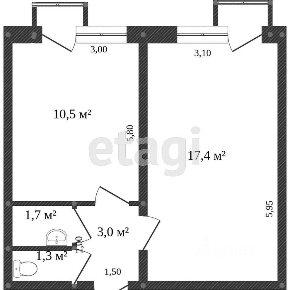 43 м² · Этаж 2 из 5