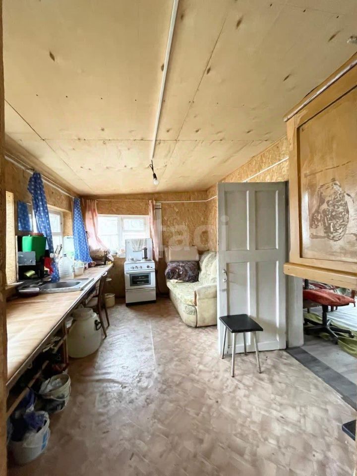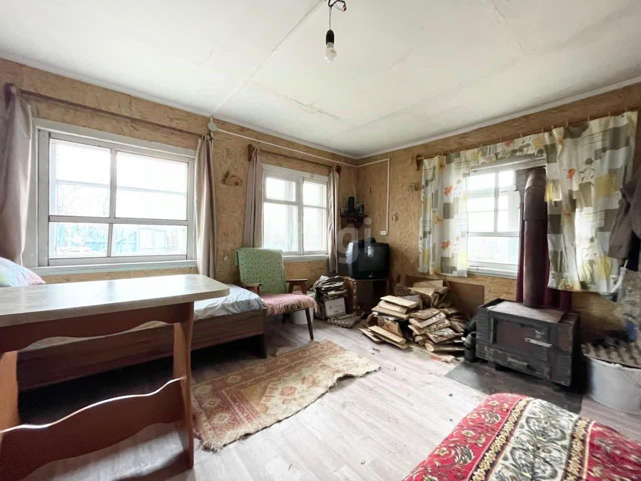 Участок площадью 9,1 сот. оформлен в собственность. На участке расположился уютный домик на заливном фундаменте, состоящий из двух комнат и веранды, полы утеплены, сверху уложена фанера и линолеум, стены и потолок изнутри также утеплены и обшиты листами ОСП и фанерой. В доме установлена печь-буржуйка, имеется запас дров для межсезонья.