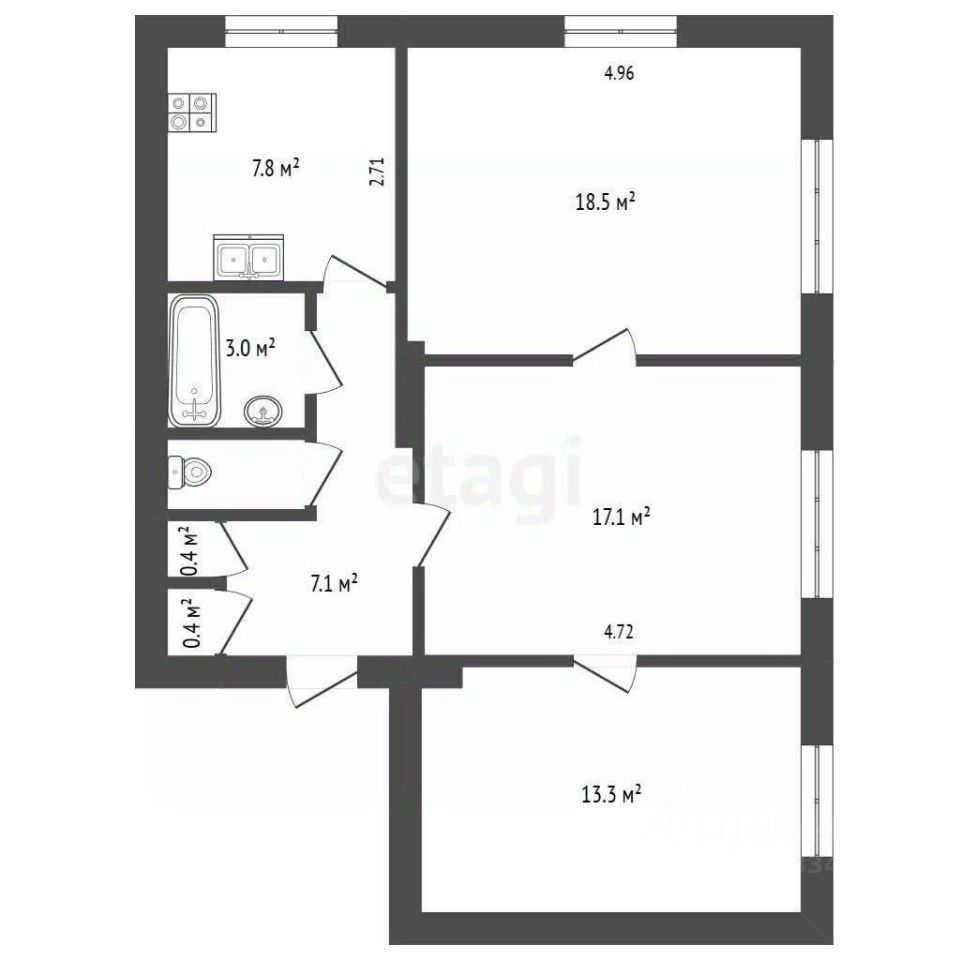 Трехкомнатная квартира площадью 68,8 кв. м расположена на первом этаже в доме по улице Калинина, 9. Объект представляет собой свободное пространство с демонтированными перегородками, что открывает широкие возможности для адаптации под индивидуальные задачи. Помещение исторически использовалось для гостиничного бизнеса и идеально подойдет как для создания просторной семейной квартиры с уникальной планировкой, так и для размещения офиса, студии или иного коммерческого начинания. По желанию нового собственника возможна обратная установка стены (убрать дополнительный вход). К объекту примыкает отдельная входная группа с подвальным помещением общей площадью 140 кв. м, которое может рассматриваться как дополнительный актив — либо для совместного использования, либо для последующей отдельной продажи. Дом содержится в хорошем состоянии, подъезд чистый. Придомовая территория благоустроена: здесь оборудованы две детские площадки и организована просторная парковка. Район отличается развитой инфраструктурой — в шаговой доступности находятся детские сады, школа, магазины и остановки общественного транспорта, обеспечивающие отличную транспортную связность. Это ликвидное предложение, сочетающее в себе выгодное расположение, универсальность пространства и потенциал для увеличения инвестиционной привлекательности за счет дополнительных площадей.