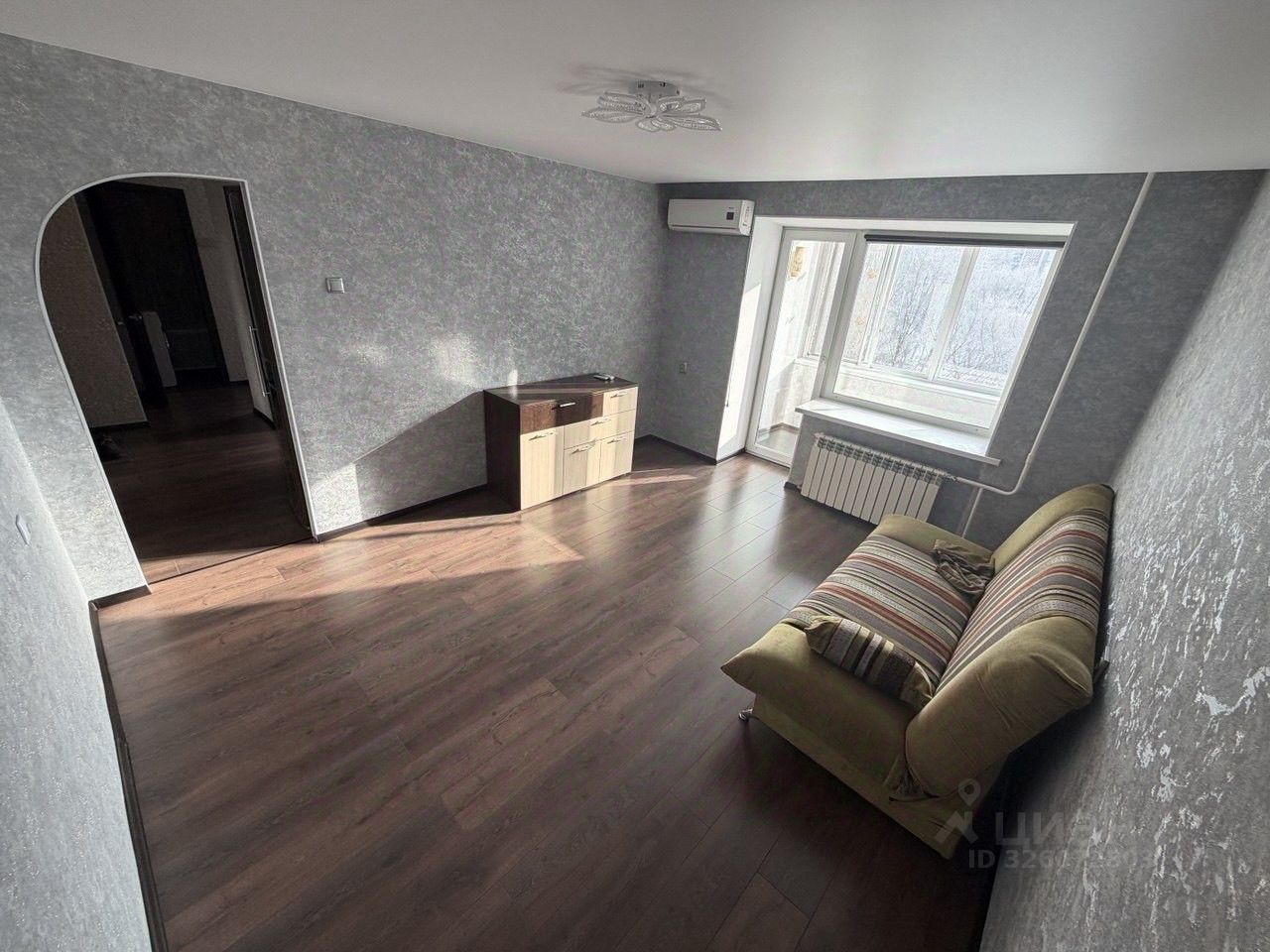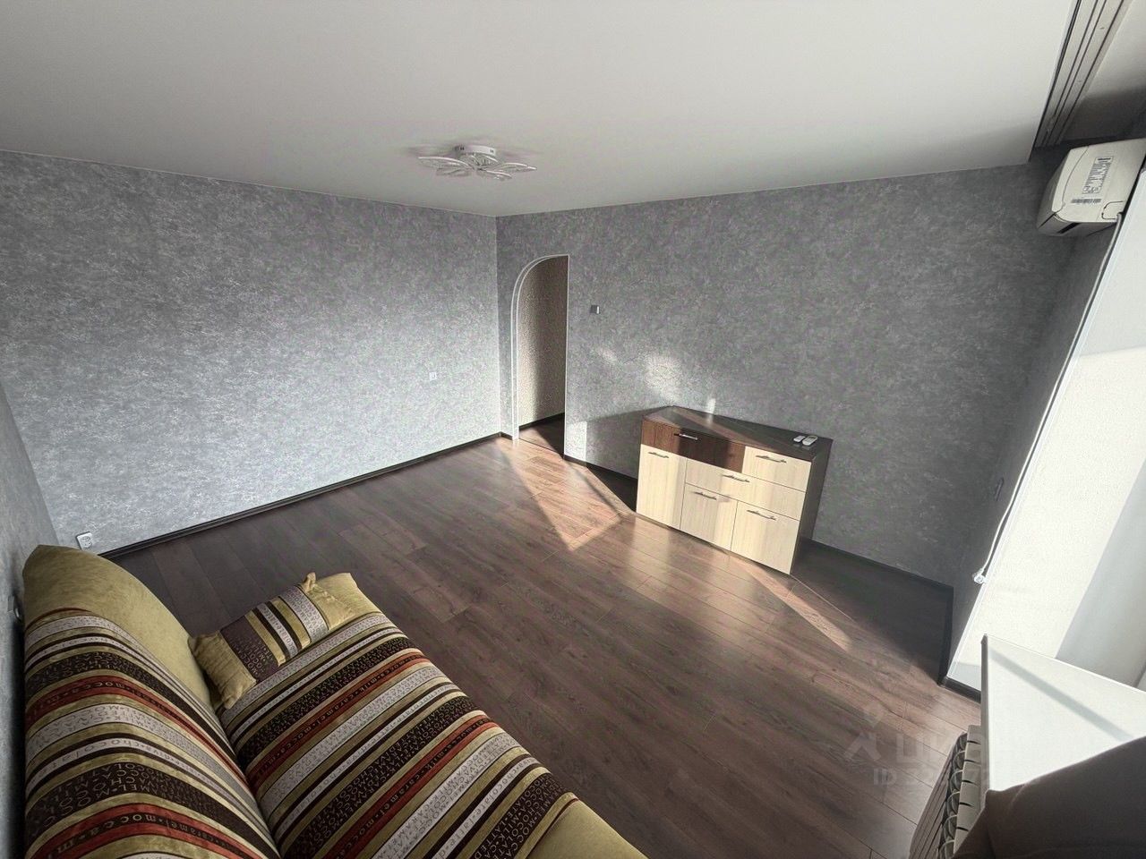 Квартира с новым ремонтом в комнатах, прихожей и кухне, комнаты изолированные. В гостиной установлен кондиционер, что обеспечит комфорт в жаркие дни. Из мебели имеются шкаф,кровать, прикроватный столик, комод и диван.